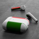 iStyles Apple AirPods Skin design of Green, Red, Pink, Turquoise, Material property, Magenta, Font, Rectangle, Pattern, Graphic design, with white, red, green colors, and tagged with flags.