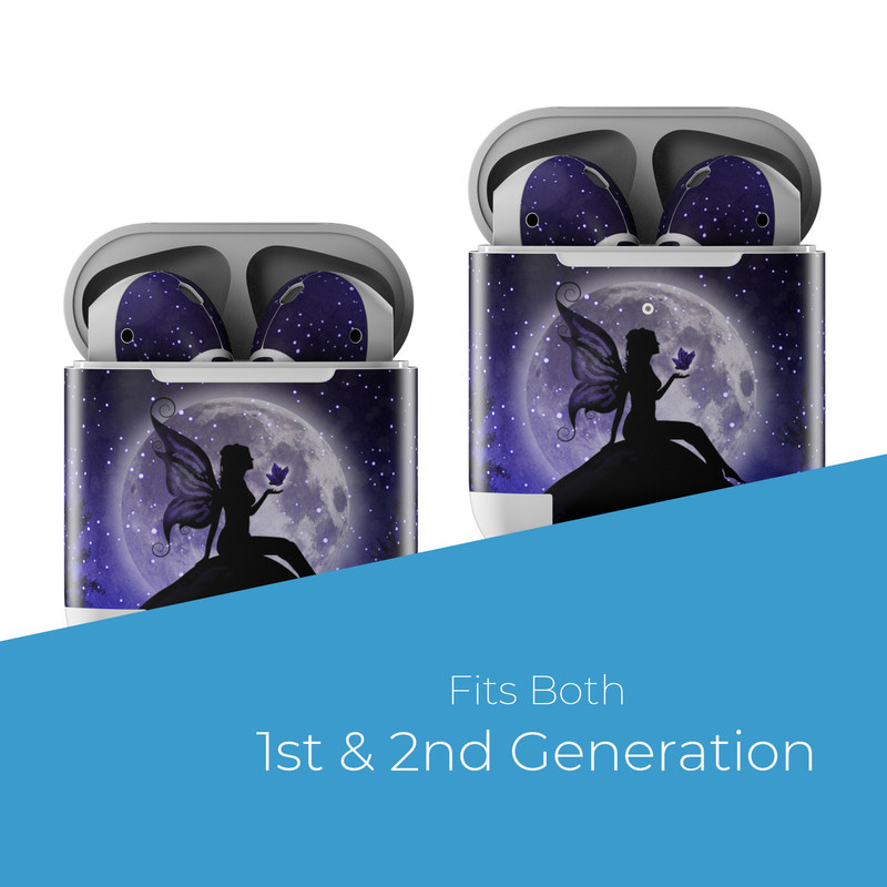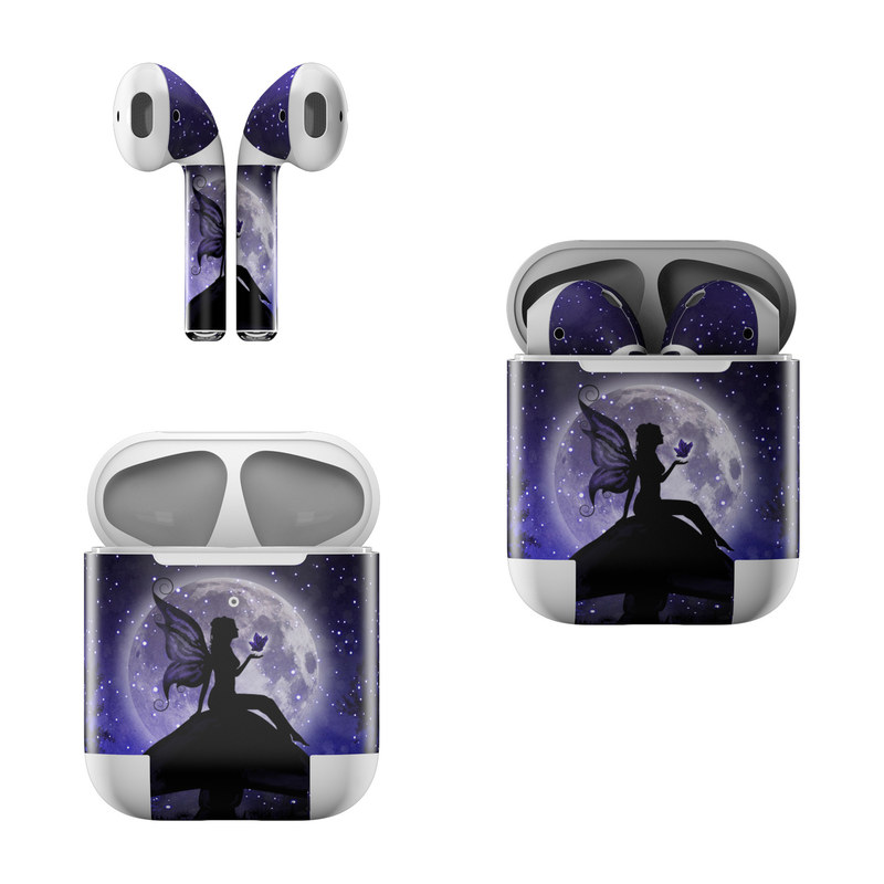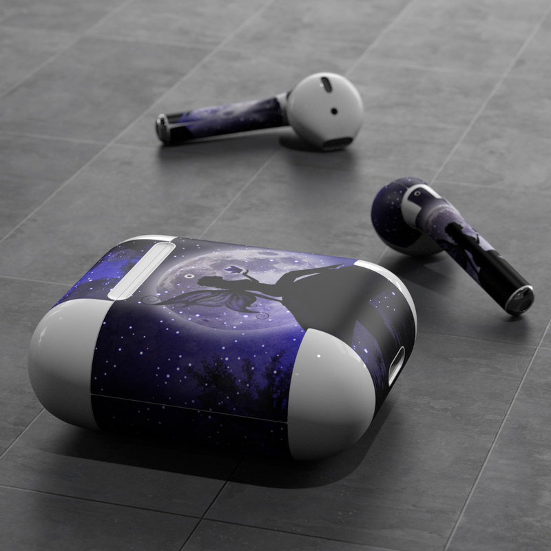 iStyles Apple AirPods Skin design of Purple, Sky, Moonlight, Cg artwork, Fictional character, Darkness, Night, Illustration, Space, Star, with black, blue, gray, purple colors, and tagged with animals, fantasy.