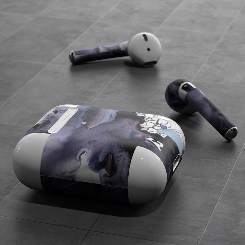 iStyles Apple AirPods Skin design of Watercolor paint, Illustration, Art, World, Paint, Cg artwork, Drawing, Graphic design, Animation, Rock, with black, purple, white, blue colors, and tagged with abstract, nature, abstract, purple, watercolor.