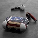 iStyles Apple AirPods Skin design of Baseball bat, Baseball equipment, with black, red, gray, green, blue colors, and tagged with patterns, signs, flags.