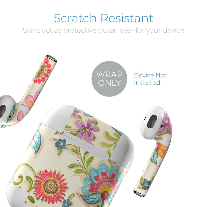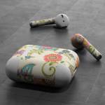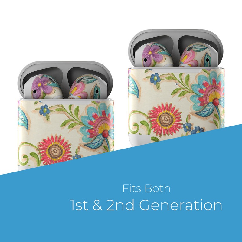 iStyles Apple AirPods Skin design of Pattern, Floral design, Flower, Botany, Design, Visual arts, Textile, Plant, Wildflower, Pedicel, with gray, green, pink, yellow, red, blue colors, and tagged with patterns, nature, flowers.