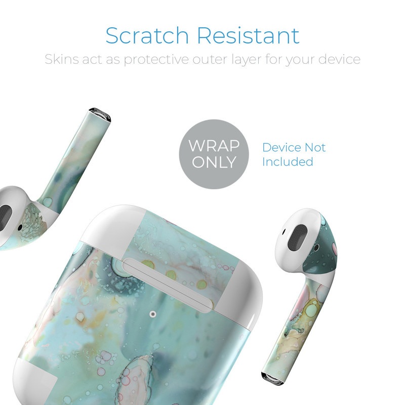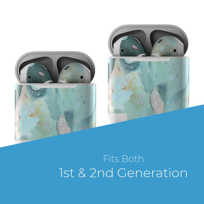 iStyles Apple AirPods Skin design of Aqua, Blue, Green, Watercolor paint, Pattern, Turquoise, Organism, Design, Art, Painting, with blue, green, pink colors, and tagged with patterns, abstract, blue, green, organic.