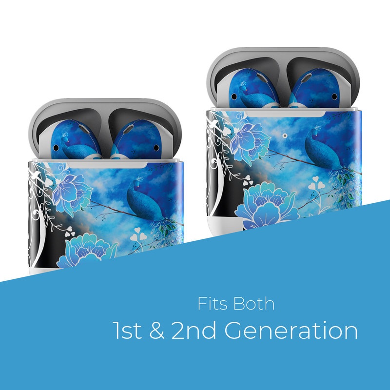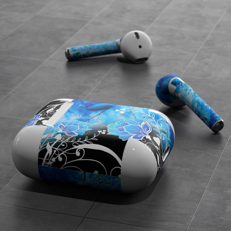 iStyles Apple AirPods Skin design of Blue, Pattern, Graphic design, Design, Illustration, Organism, Visual arts, Graphics, Plant, Art, with black, blue, gray, white colors, and tagged with abstract, animals, flowers.