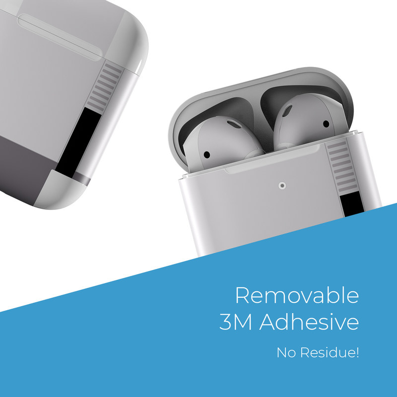 Each Skin covers your Apple AirPods, provides low profile protection with no bulk and helps protect from scratches. The unique weaved adhesive allows for fast, easy and accurate application, and goo-free removal.