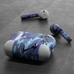 iStyles Apple AirPods Skin design of Military camouflage, Pattern, Blue, Aqua, Teal, Design, Camouflage, Textile, Uniform, with blue, black, gray, purple colors, and tagged with military, patterns, lookslike.