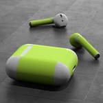 iStyles Apple AirPods Skin design of Green, Yellow, Text, Leaf, Font, Grass, with green colors, and tagged with solidcolors, yellow, green, citrus, fruit, bright, nature, confidence, energy, liveliness, freshness, creativity.