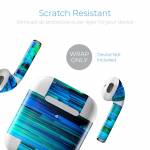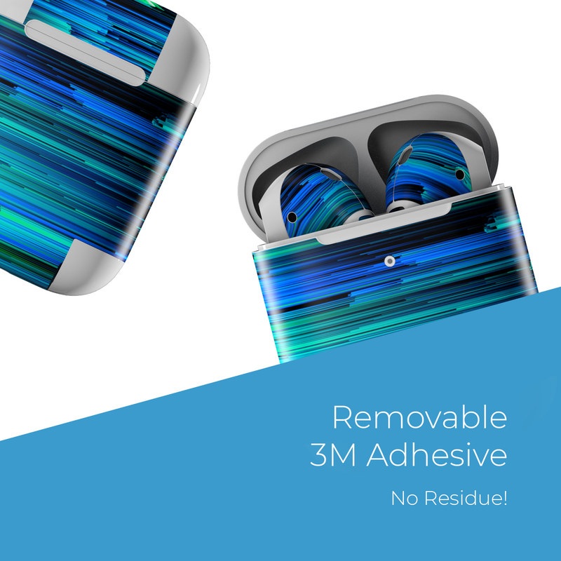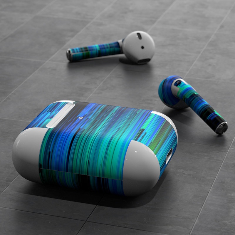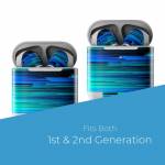 iStyles Apple AirPods Skin design of Blue, Green, Turquoise, Light, Colorfulness, Electric blue, with blue, green, black, white colors, and tagged with abstract, space, blue, geometric, geometry, glitch, green, lines, shapes, space.