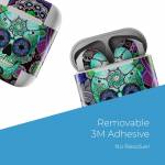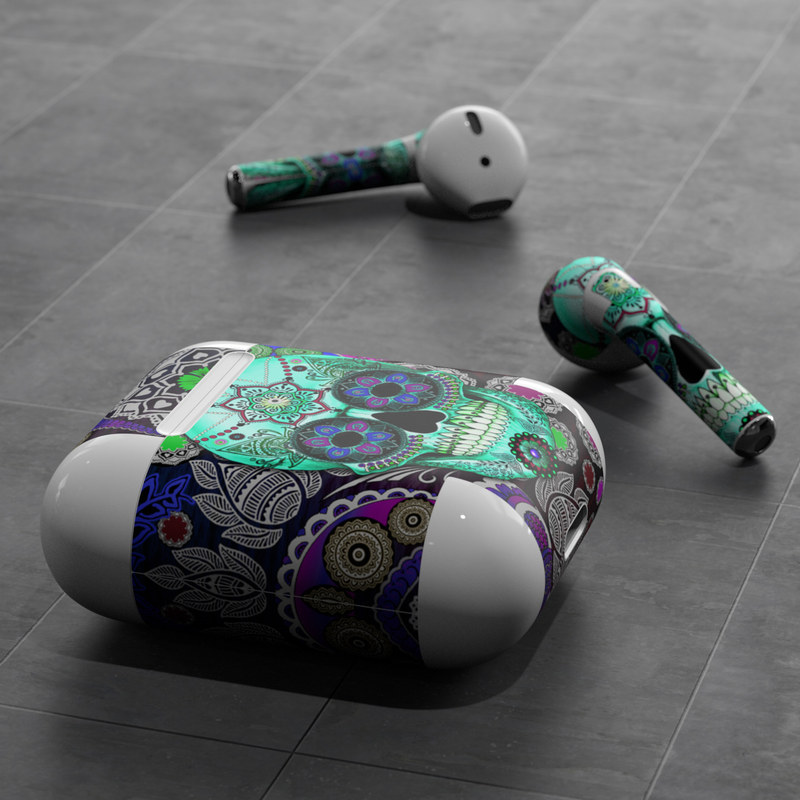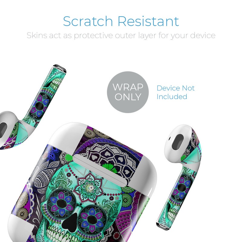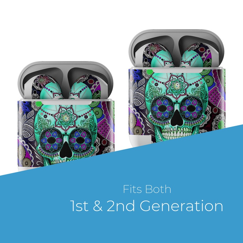 iStyles Apple AirPods Skin design of Psychedelic art, Pattern, Skull, Purple, Bone, Violet, Design, Visual arts, Art, Magenta, with blue, green, purple, red, green, pink colors, and tagged with skulls, patterns, flowers.