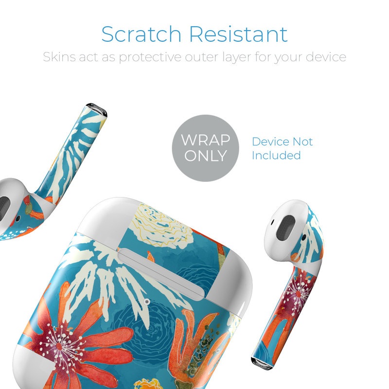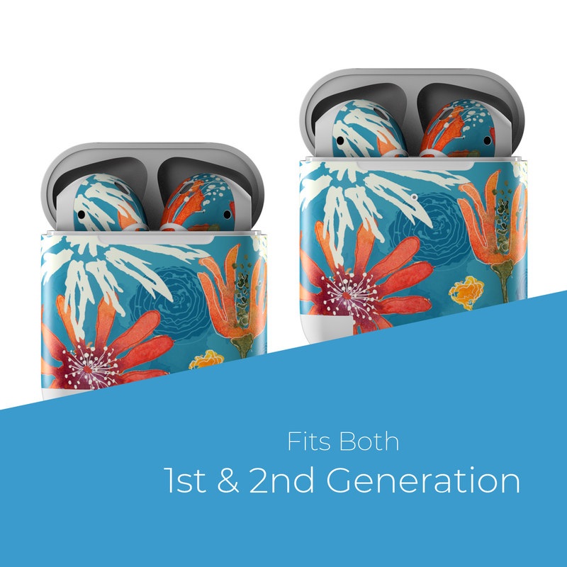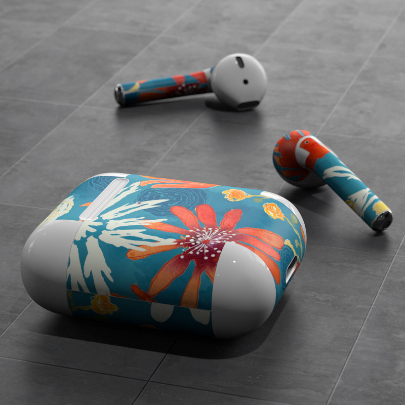 iStyles Apple AirPods Skin design of Pattern, Visual arts, Wrapping paper, Design, Wildflower, Floral design, Textile, Flower, Plant, Motif, with blue, red, gray, yellow, green colors, and tagged with flowers, patterns.