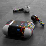 iStyles Apple AirPods Skin design of Pattern, Symmetry, Font, Design, Graphic design, Line, Colorfulness, Magenta, Square, Graphics, with black, green, blue, orange, red colors, and tagged with patterns, objects.
