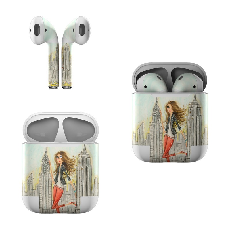 iStyles Apple AirPods Skin design of Human settlement, Fashion illustration, Illustration, City, Art, Architecture, Drawing, Fictional character, with gray, green, black, red colors, and tagged with people, objects, urban, fashion, fineart.