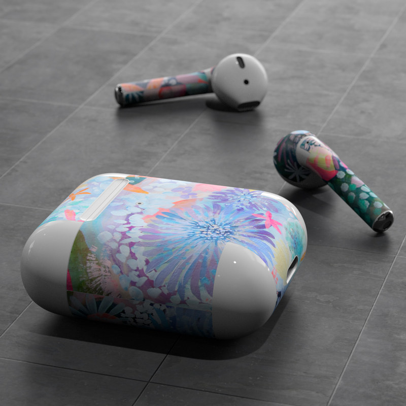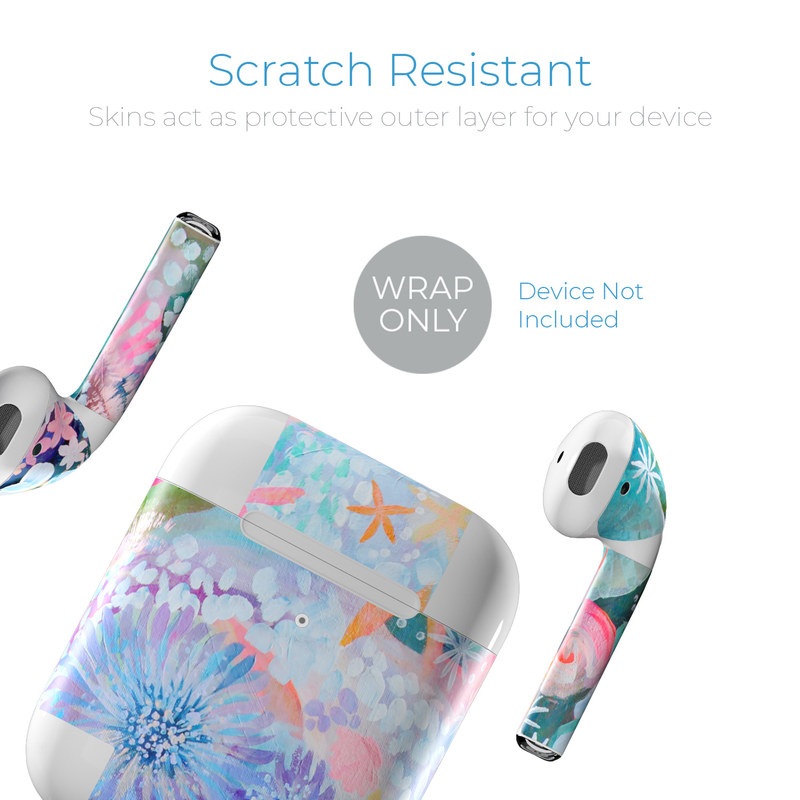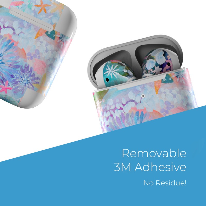 iStyles Apple AirPods Skin design of Pattern, Aqua, Textile, Design, Watercolor paint, Visual arts, Flower, Art, Plant, Illustration, with blue, orange, pink, purple, green, white colors, and tagged with nature, flowers, animals, beach, bright, flowers, ocean, pastel, sea, sealife, starfish, water, watercolor.