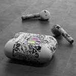 iStyles Apple AirPods Skin design of Pattern, Drawing, Doodle, Design, Visual arts, Font, Black-and-white, Monochrome, Illustration, Art, with gray, black, white colors, and tagged with patterns, objects.