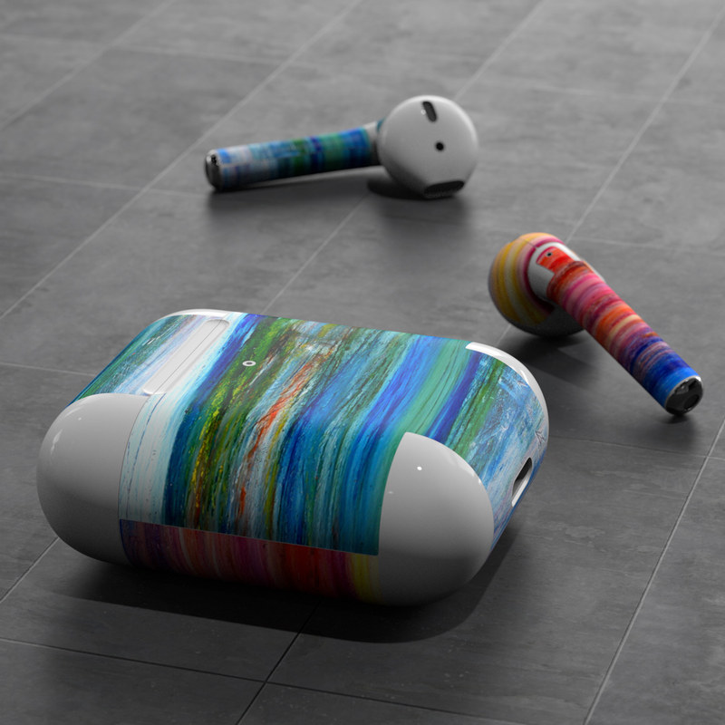 iStyles Apple AirPods Skin design of Sky, Painting, Acrylic paint, Modern art, Watercolor paint, Art, Horizon, Paint, Visual arts, Wave, with gray, blue, red, black, pink colors, and tagged with patterns.