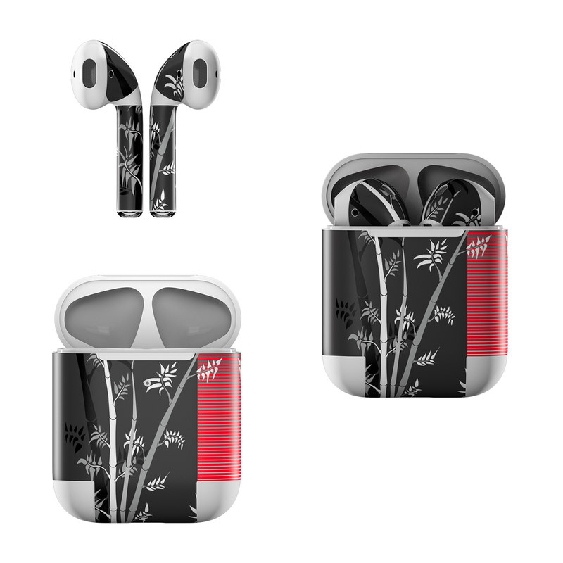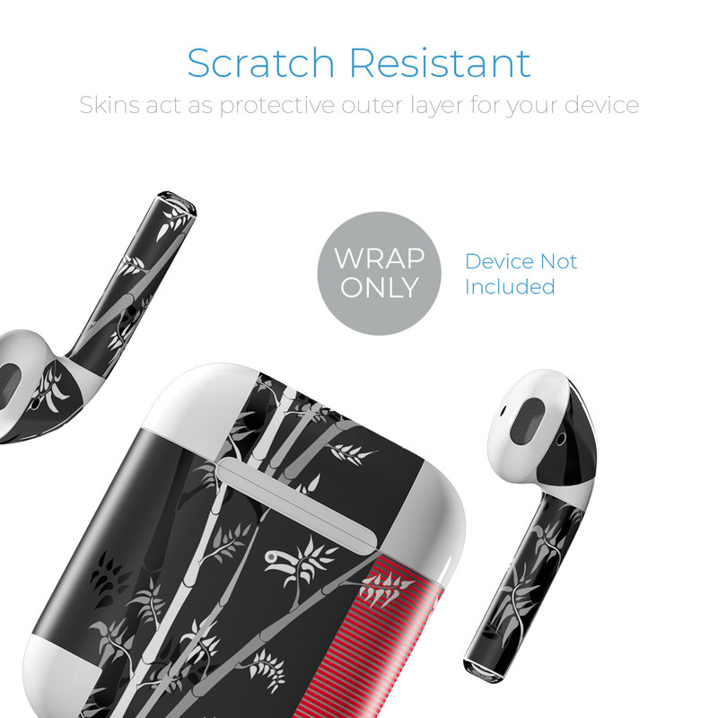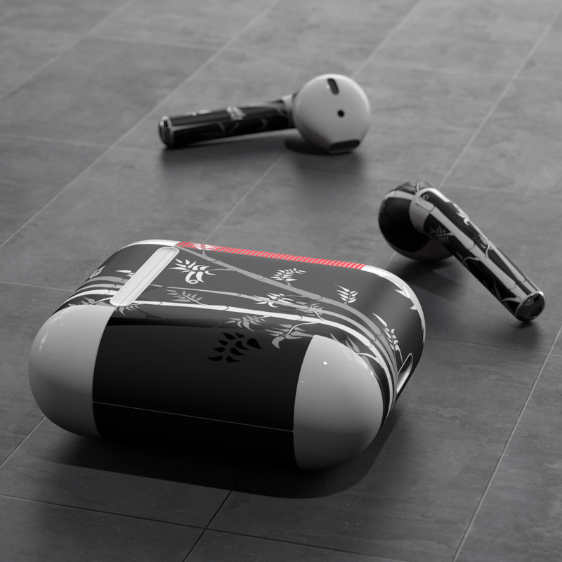 iStyles Apple AirPods Skin design of Tree, Branch, Plant, Graphic design, Bamboo, Illustration, Plant stem, Black-and-white, with black, red, gray, white colors, and tagged with nature.