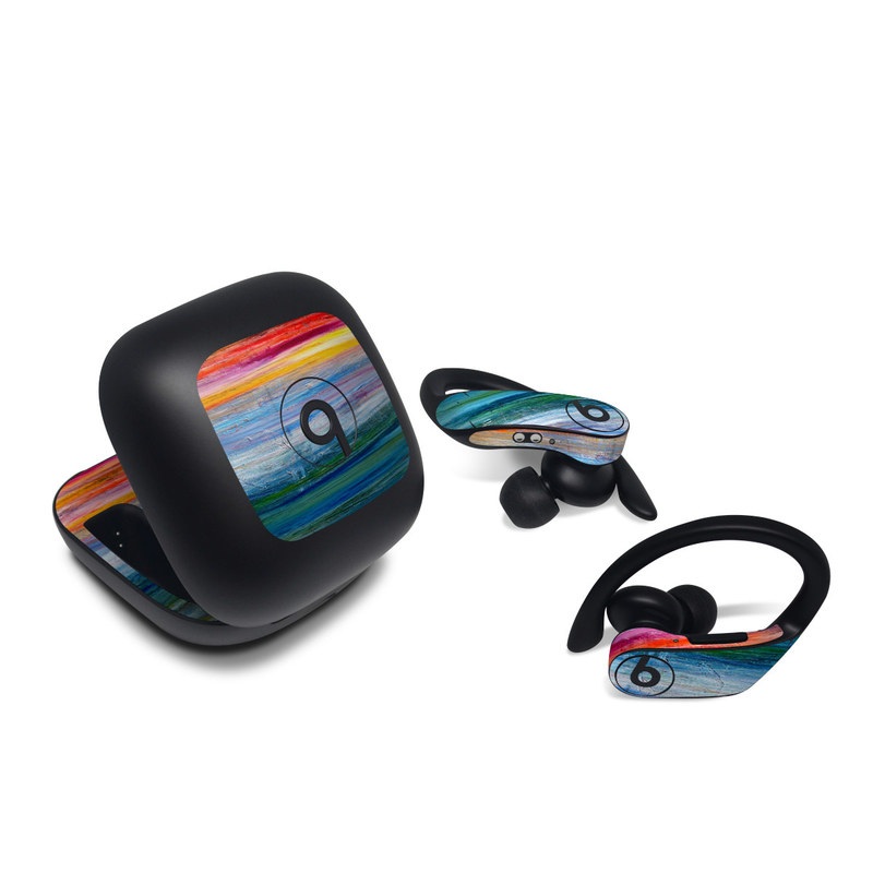 iStyles Beats Powerbeats Pro Skin design of Sky, Painting, Acrylic paint, Modern art, Watercolor paint, Art, Horizon, Paint, Visual arts, Wave, with gray, blue, red, black, pink colors, and tagged with patterns.