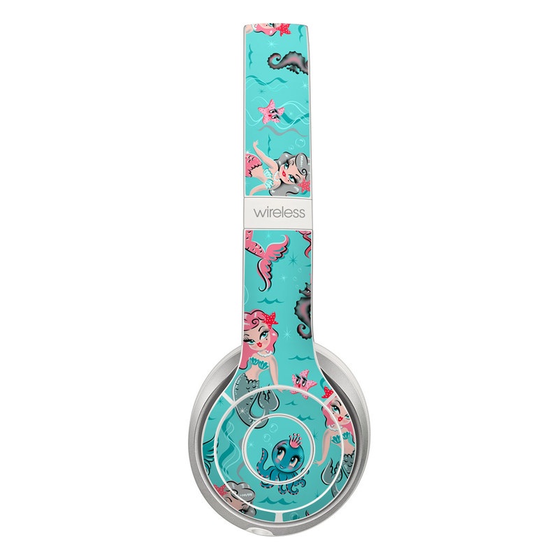 iStyles Beats Solo 3 Wireless Skin design of Turquoise, Wrapping paper, Cartoon, Pattern, Textile, Aqua, Design, Gift wrapping, Illustration, Fictional character, with blue, pink, yellow, gray colors, and tagged with patterns, animals, people, fantasy, mermaid, mermaids, mystical, ocean, pastel, pattern, pinup, pinupgirl, sea, sealife.