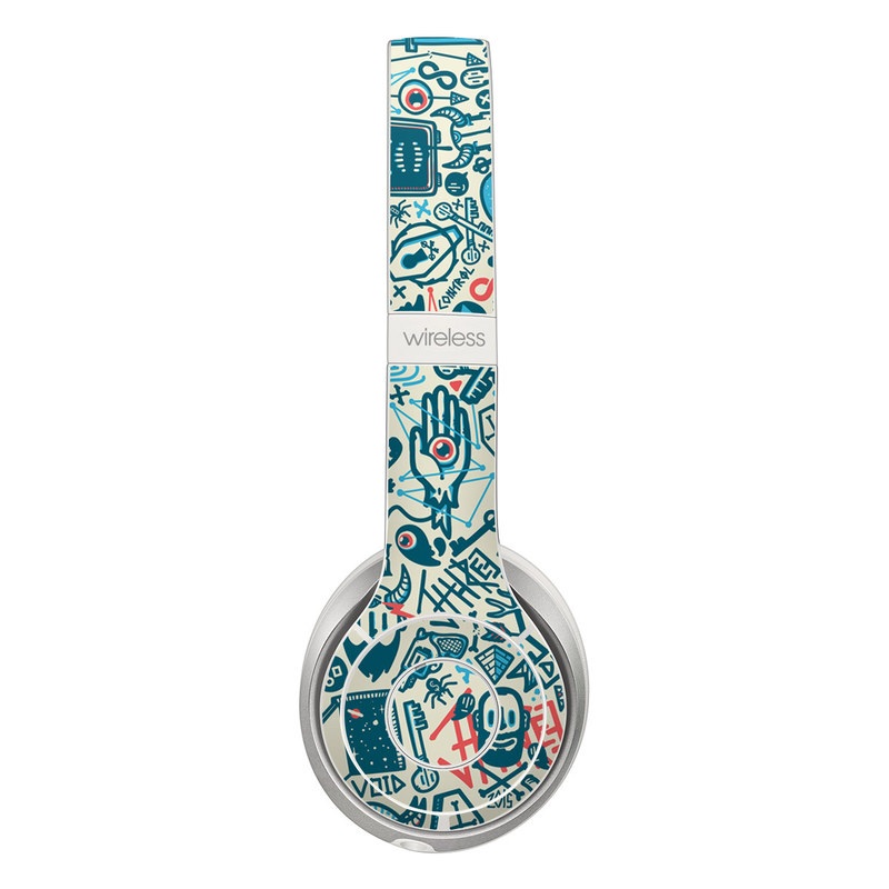 iStyles Beats Solo 3 Wireless Skin design of Pattern, Psychedelic art, Turquoise, Art, Design, Visual arts, Line, Drawing, Doodle, Graphic design, with white, green, blue, red colors, and tagged with patterns, animals, people, objects, signs.