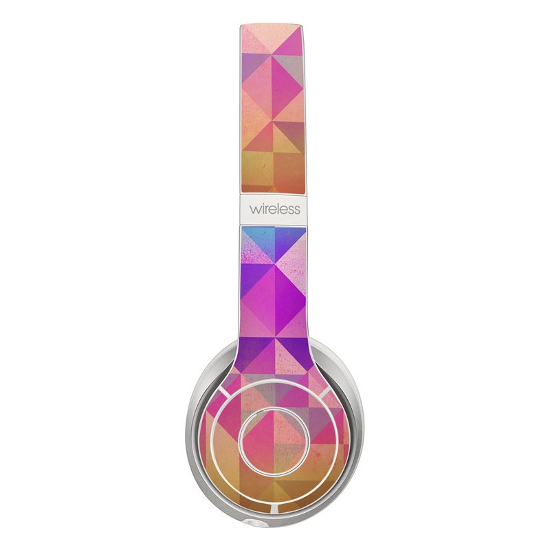 iStyles Beats Solo 3 Wireless Skin design of Pattern, Purple, Triangle, Violet, Magenta, Line, Design, Symmetry, Psychedelic art, with gray, purple, green, blue, pink colors, and tagged with patterns.
