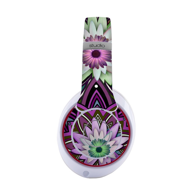 iStyles Beats Studio3 Wireless Skin design of Pattern, Purple, Green, Flower, Psychedelic art, Design, Lilac, Plant, Symmetry, Visual arts, with black, gray, green, purple, blue, red colors, and tagged with patterns, flowers.