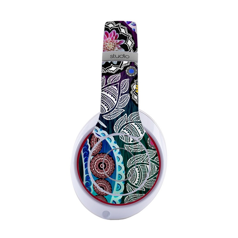 iStyles Beats Studio3 Wireless Skin design of Pattern, Psychedelic art, Art, Visual arts, Design, Floral design, Textile, Motif, Circle, Illustration, with black, gray, purple, blue, green, red colors, and tagged with patterns, flowers.