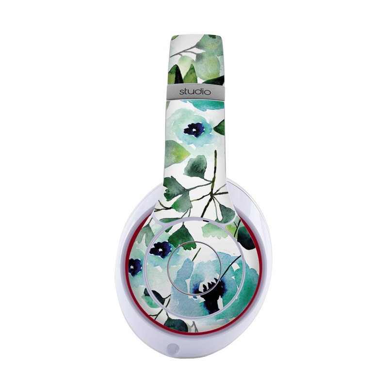 iStyles Beats Studio3 Wireless Skin design of Green, Pattern, Leaf, Aqua, Plant, Design, Branch, Organism, Flower, Ivy, with white, green, blue, black colors, and tagged with flowers, patterns, floral, flowers, pattern, peonies, sara, saraberrenson, watercolor.