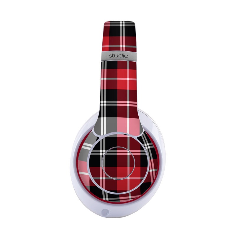 iStyles Beats Studio3 Wireless Skin design of Plaid, Tartan, Pattern, Red, Textile, Design, Line, Pink, Magenta, Square, with black, gray, pink, red, white colors, and tagged with patterns.