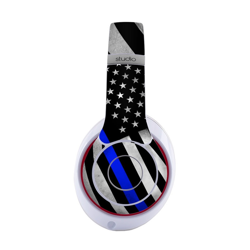 iStyles Beats Studio3 Wireless Skin design of Flag of the united states, Flag, Cobalt blue, Pattern, Line, Black-and-white, Design, Monochrome, Electric blue, Parallel, with black, white, gray, blue colors, and tagged with flags, signs, firstresponder, flag, police, rescue, thinline.