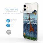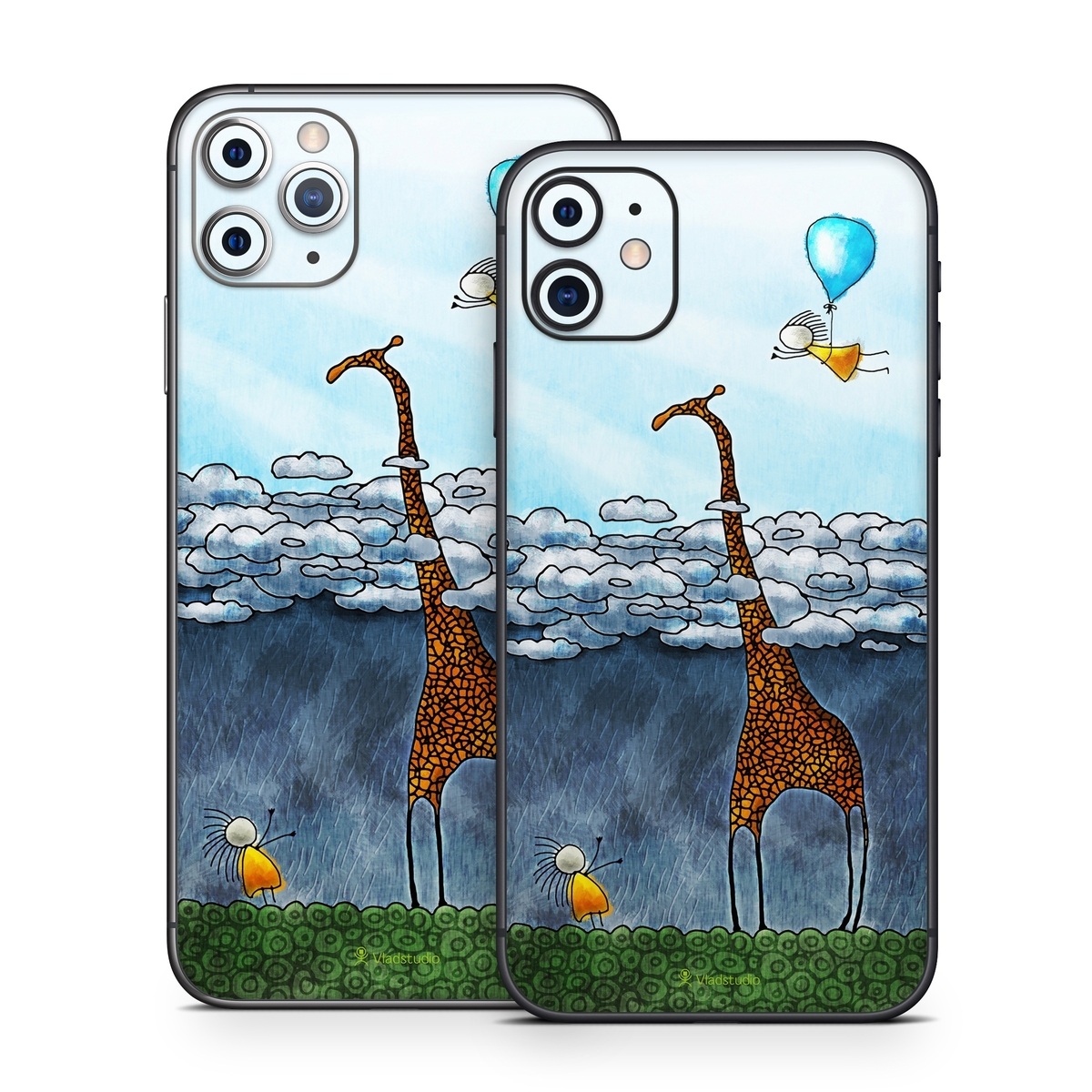 iStyles iPhone 11 Series Skin design of Giraffe, Sky, Tree, Water, Branch, Giraffidae, Illustration, Cloud, Grassland, Bird, with blue, gray, yellow, green colors, and tagged with animals, nature, objects.