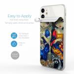 iStyles iPhone 11 Series Skin design of Doll, Cartoon, Illustration, Cat, Art, Fawn, Toy, Fictional character, Whiskers, with blue, yellow, red, orange, gray colors, and tagged with people, animals, objects.