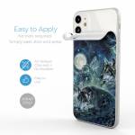 iStyles iPhone 11 Series Skin design of Cg artwork, Fictional character, Darkness, Werewolf, Illustration, Wolf, Mythical creature, Graphic design, Dragon, Mythology, with black, blue, gray, white colors, and tagged with animals, space.