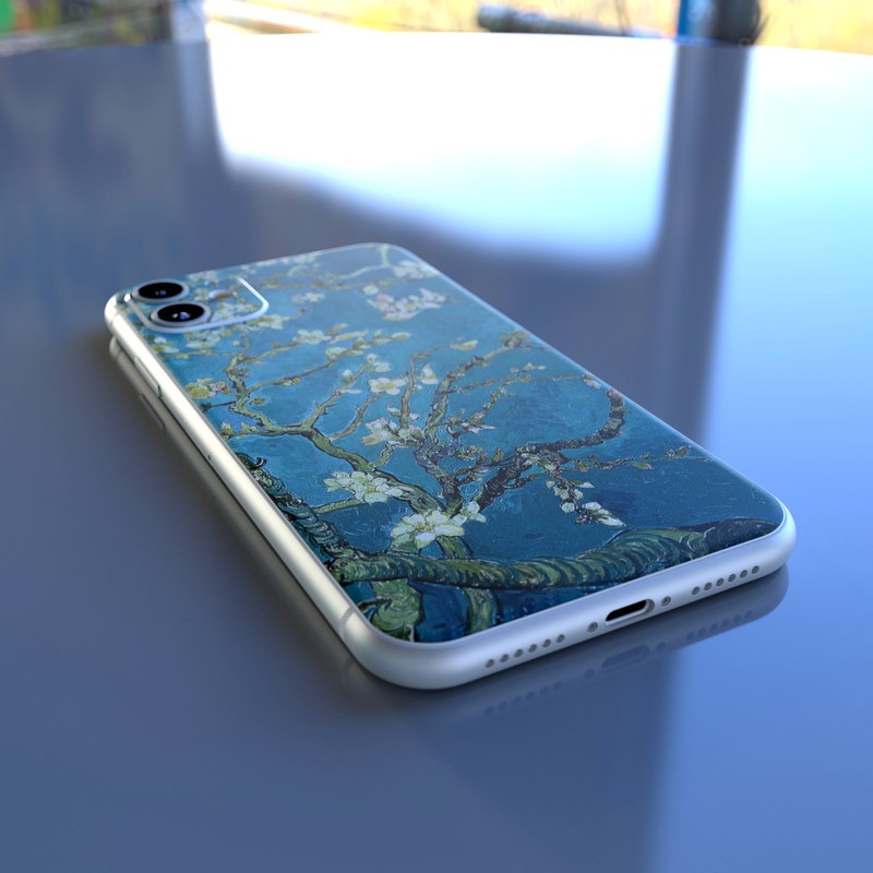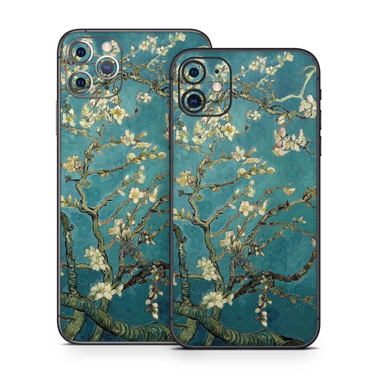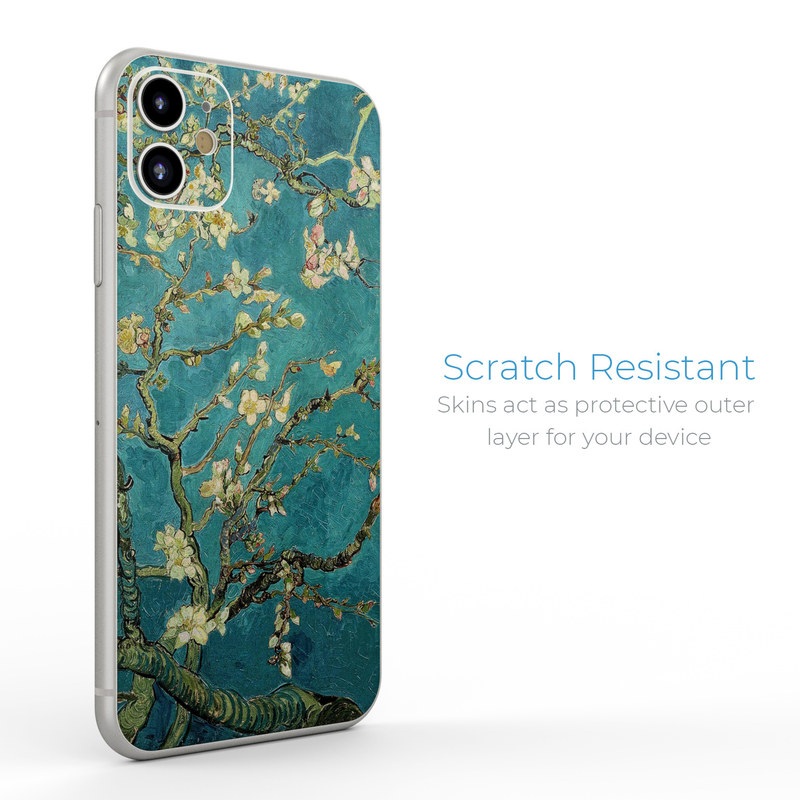 iStyles iPhone 11 Series Skin design of Tree, Branch, Plant, Flower, Blossom, Spring, Woody plant, Perennial plant, with blue, black, gray, green colors, and tagged with flowers, fineart.