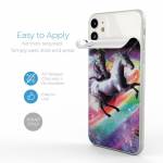 iStyles iPhone 11 Series Skin design of Illustration, Graphic design, Fictional character, Space, Sky, Astronomical object, Universe, Outer space, Art, Unicorn, with black, white, gray, red, yellow, green, blue, orange colors, and tagged with space, animals, fantasy, animals, funny, galaxy, lasers, random, space, weird.