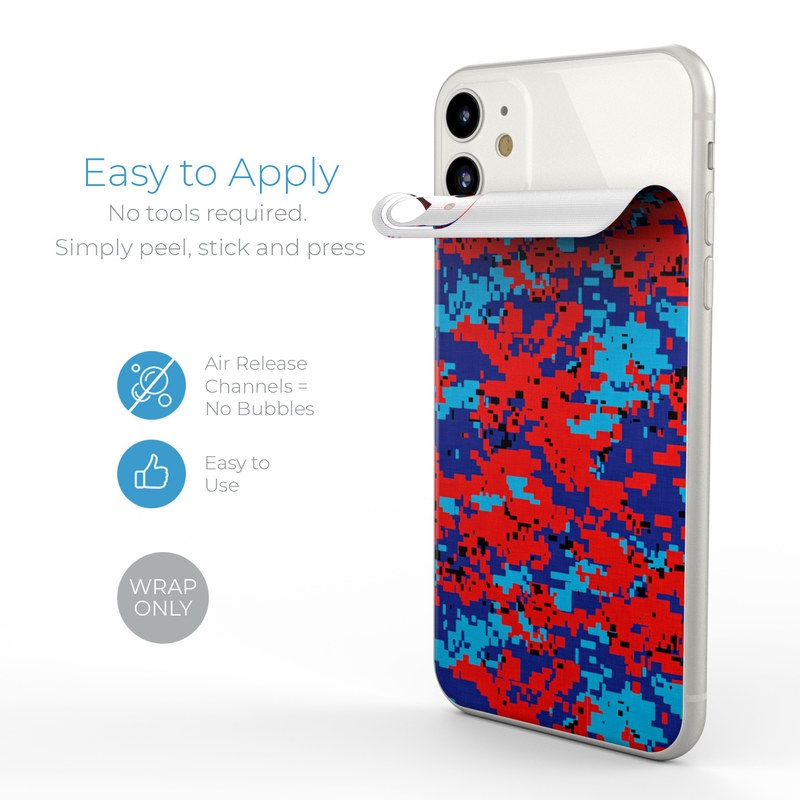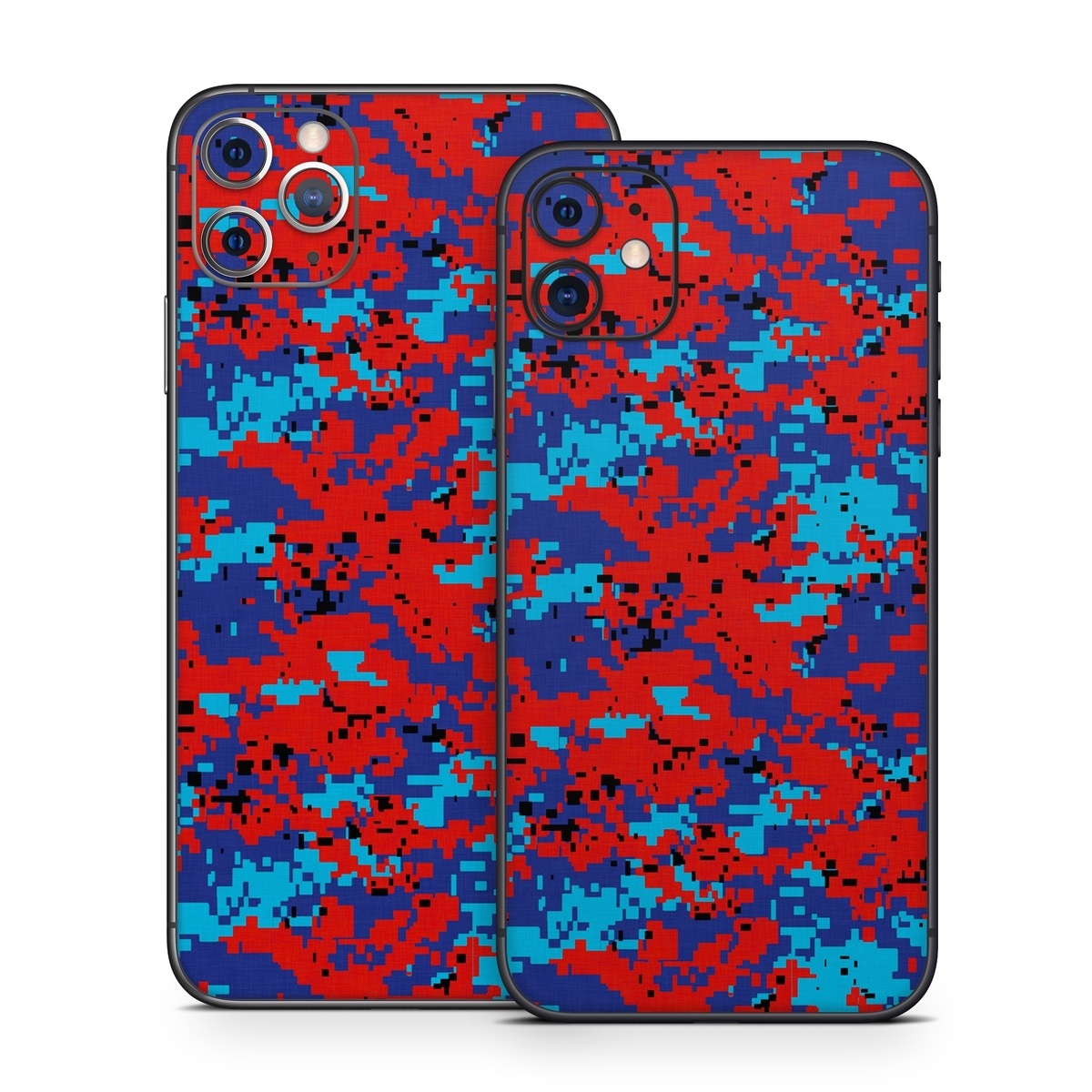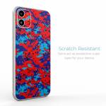iStyles iPhone 11 Series Skin design of Blue, Red, Pattern, Textile, Electric blue, with blue, red colors, and tagged with military, patterns, lookslike, camo, digitalcamo.