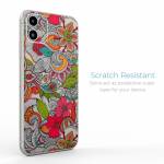 iStyles iPhone 11 Series Skin design of Pattern, Drawing, Visual arts, Art, Design, Doodle, Floral design, Motif, Illustration, Textile, with gray, red, black, green, purple, blue colors, and tagged with flowers.