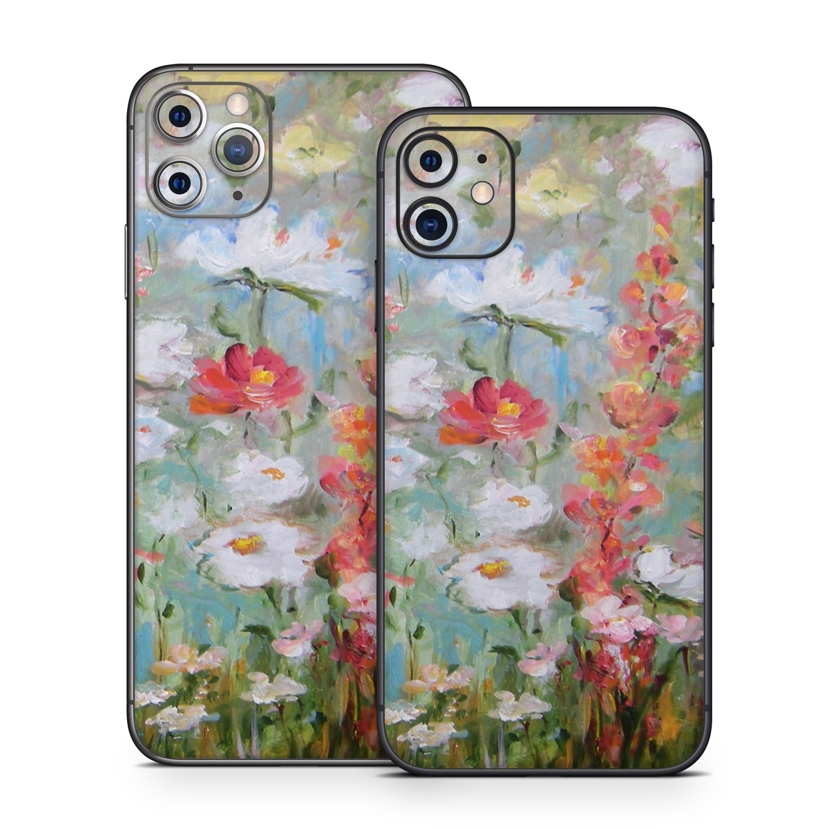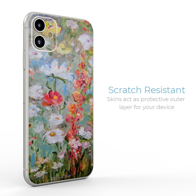 iStyles iPhone 11 Series Skin design of Flower, Painting, Watercolor paint, Plant, Modern art, Wildflower, Botany, Meadow, Acrylic paint, Flowering plant, with gray, black, green, red, blue colors, and tagged with patterns, flowers.