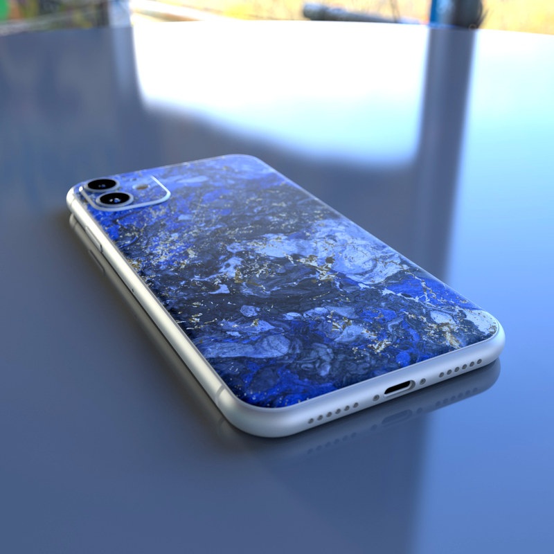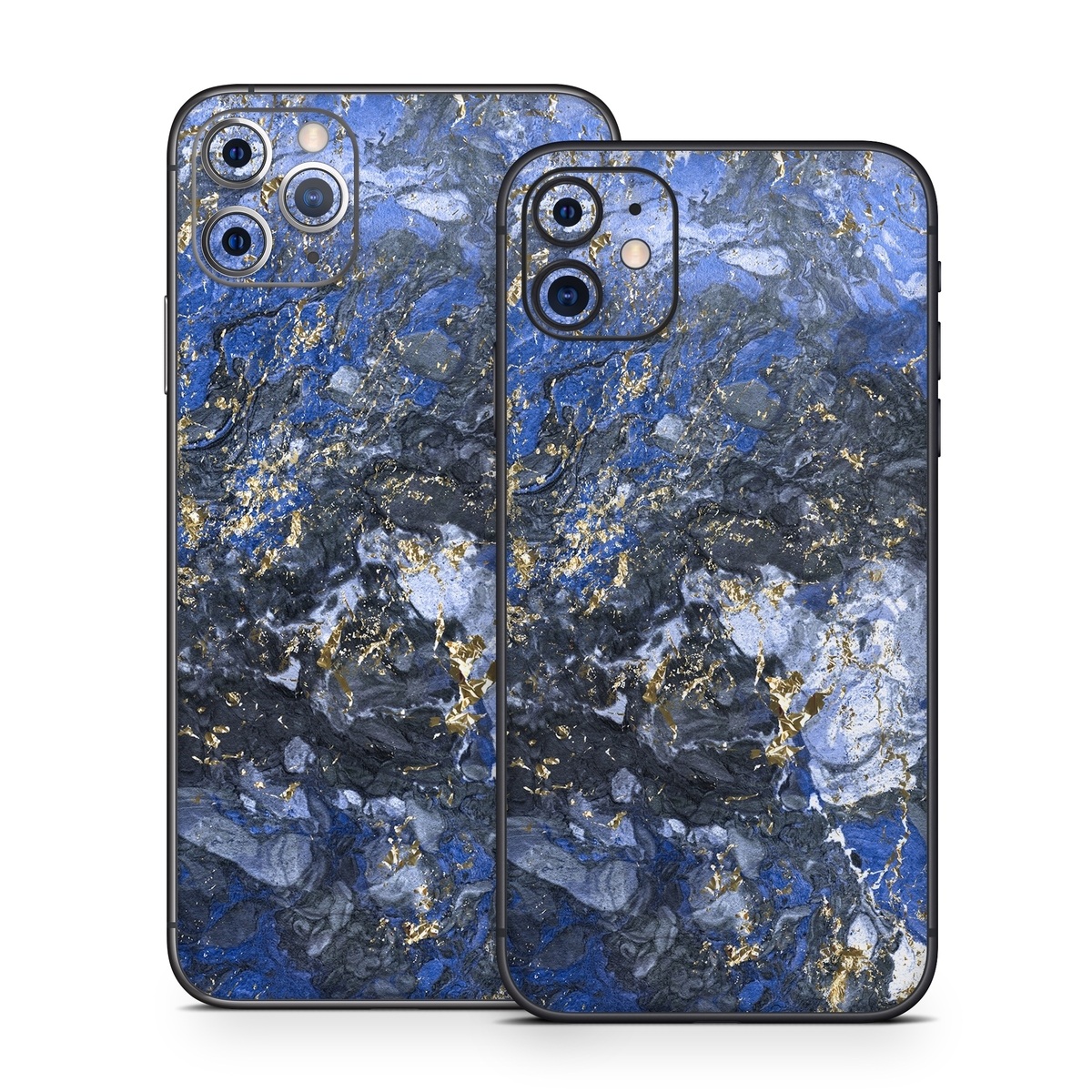 iStyles iPhone 11 Series Skin design of Blue, Water, Cobalt blue, Rock, Painting, Geology, Electric blue, Mineral, Pattern, Acrylic paint, with black, blue, yellow, white, gray colors, and tagged with patterns, lookslike, nature.