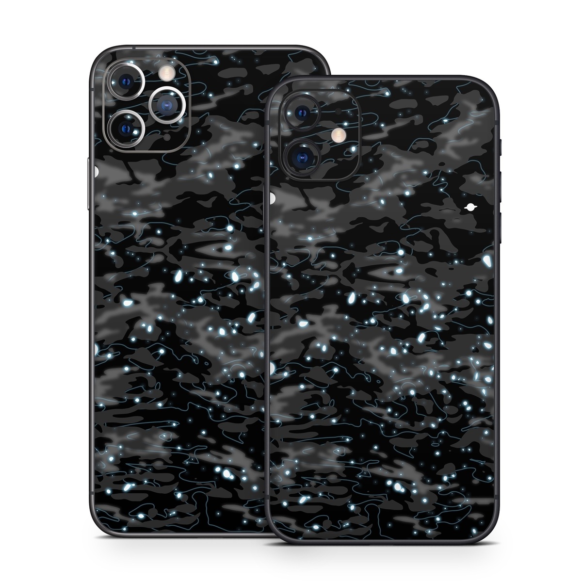 iStyles iPhone 11 Series Skin design of Black, Water, Space, Black-and-white, Granite, with blue, white, gray, blue colors, and tagged with space, patterns, black, blue, camo, galaxy, space, stars, universe.