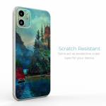 iStyles iPhone 11 Series Skin design of Nature, Natural landscape, Sky, Painting, Landscape, Illustration, Watercolor paint, Art, Calm, Water castle, with black, gray, blue, green colors, and tagged with fineart, objects, fantasy, nature, urban.