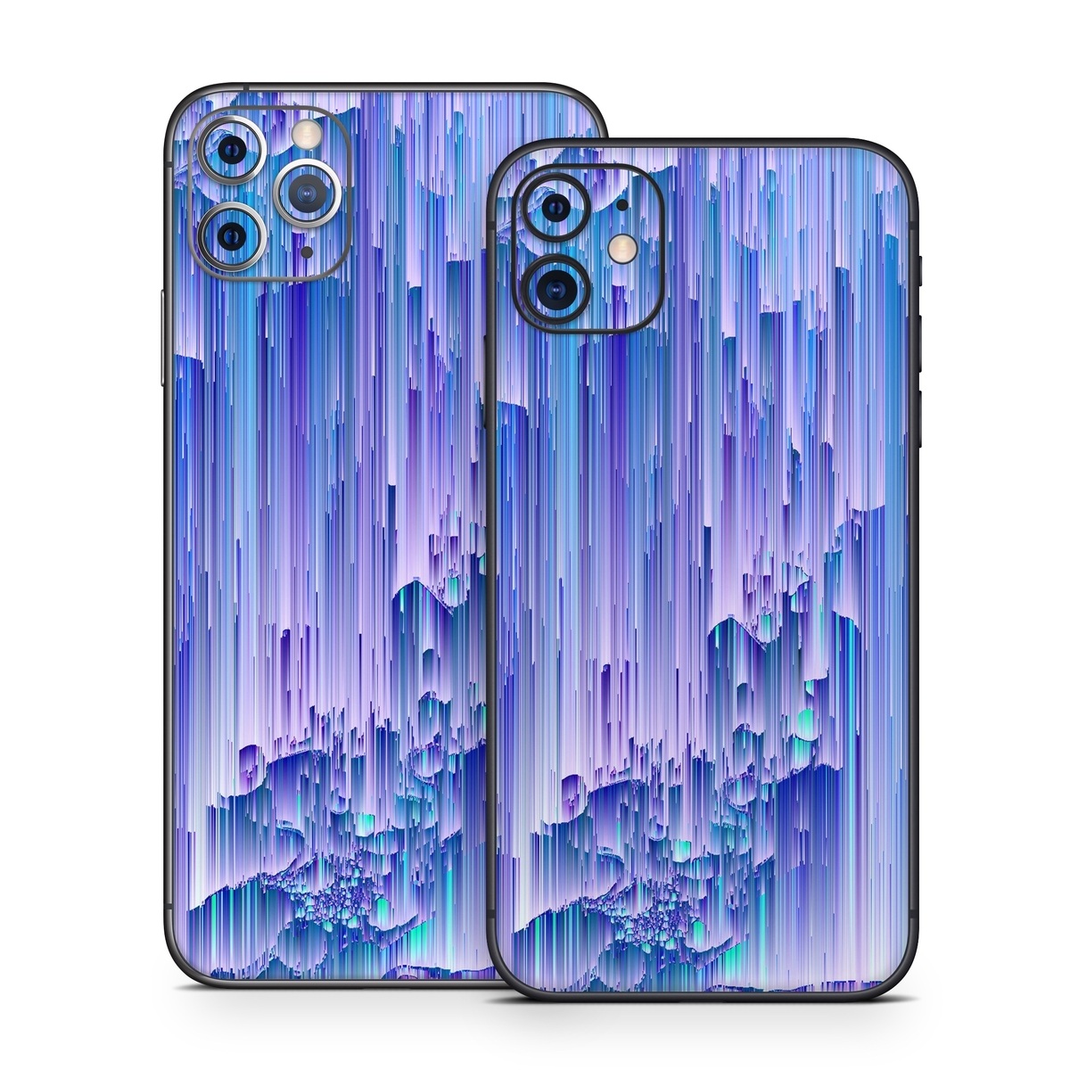 iStyles iPhone 11 Series Skin design of Blue, Purple, Lavender, Ice, with blue, purple colors, and tagged with abstract, space, blue, geometric, geometry, glitch, green, line, pastel, purple, space, teal.