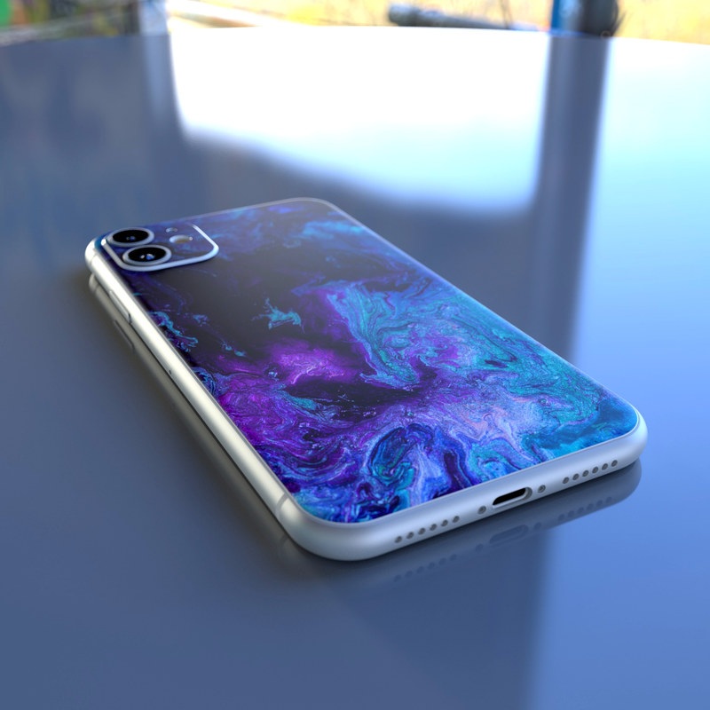 iStyles iPhone 11 Series Skin design of Blue, Purple, Violet, Water, Turquoise, Aqua, Pink, Magenta, Teal, Electric blue, with blue, purple, black colors, and tagged with abstract, space, galaxy, marbles, milkyway, nebula, space.