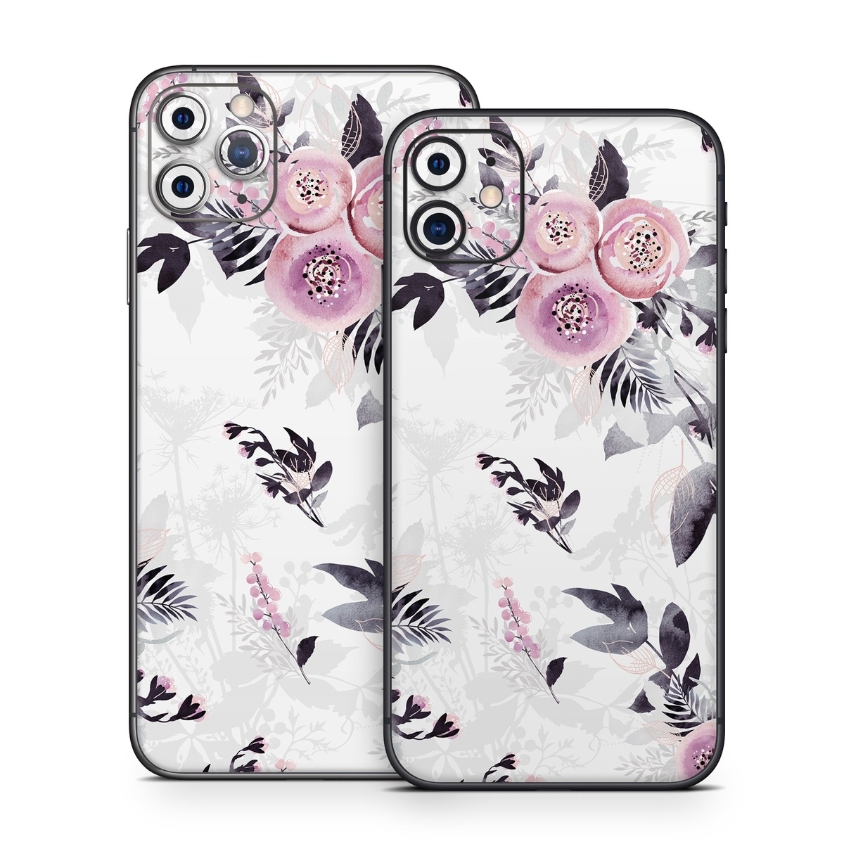 iStyles iPhone 11 Series Skin design of Pink, Pattern, Design, Floral design, Textile, Plant, Flower, Magenta, Petal, Wallpaper, with white, purple, pink, black, gray colors, and tagged with patterns, flowers, florals, flowers, pattern, purple, watercolor, white.
