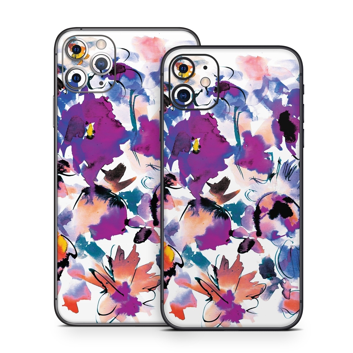 iStyles iPhone 11 Series Skin design of Product, Purple, Illustration, Graphic design, Plant, Clip art, Flower, Graphics, Wildflower, Watercolor paint, with white, purple, pink, yellow, blue, black colors, and tagged with flowers, floral, flowers, nature, watercolor.