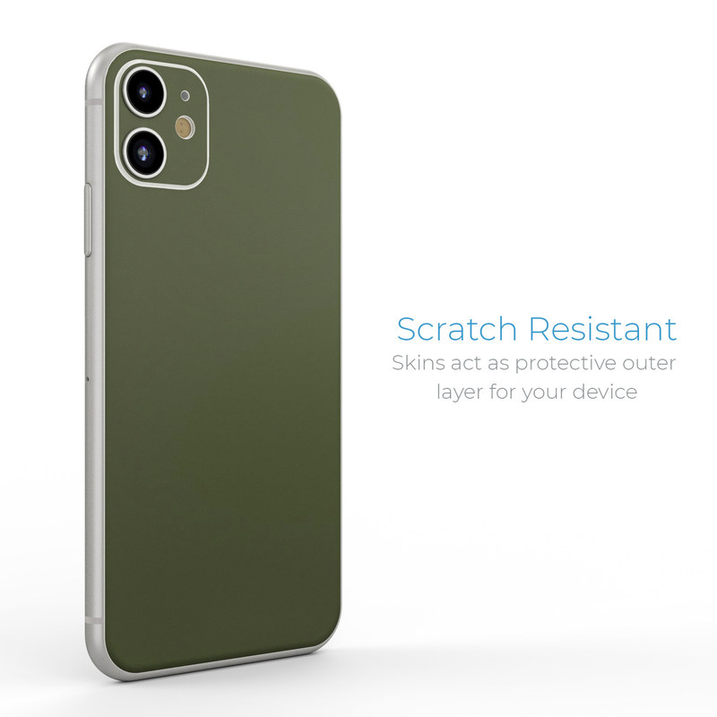 iStyles iPhone 11 Series Skin design of Green, Brown, Text, Yellow, Grass, Font, Pattern, Beige, with green, brown colors, and tagged with solidcolors, military, duller, olive, green, camouflage, military, troops.