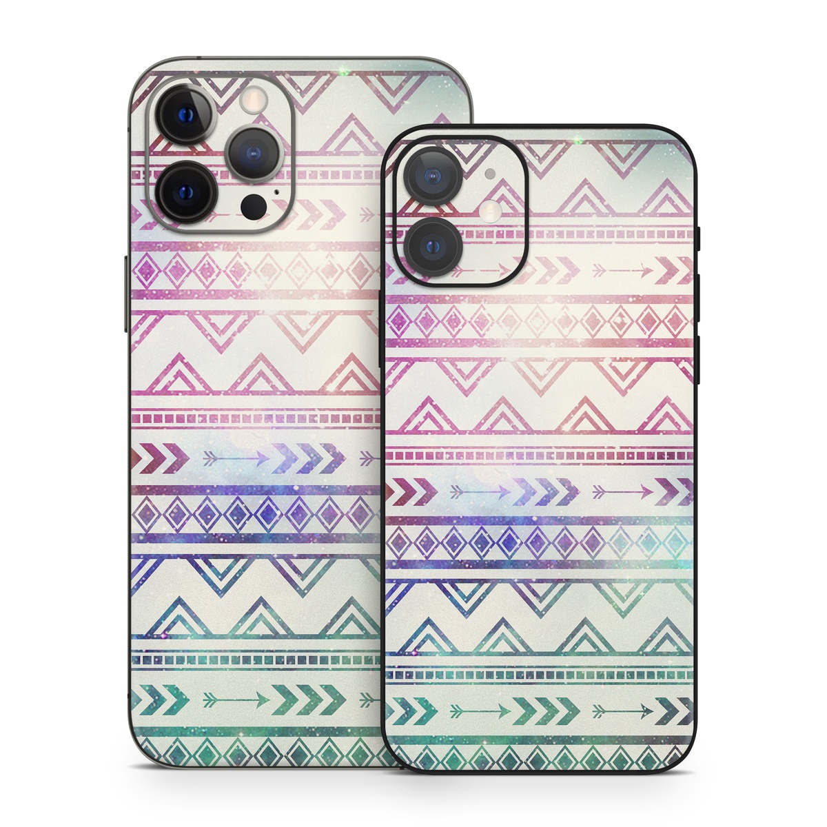 iStyles iPhone 12 Series Skin design of Pattern, Line, Teal, Design, Textile, with gray, pink, yellow, blue, black, purple colors, and tagged with patterns.