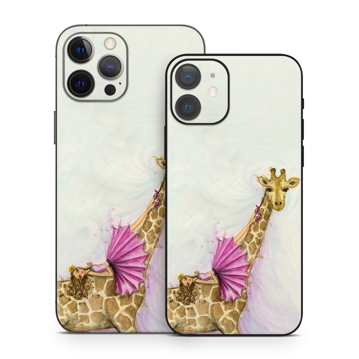 iStyles iPhone 12 Series Skin design of Giraffe, Giraffidae, Terrestrial animal, Pink, Wildlife, Snout, Fawn, Illustration, Watercolor paint, Magenta, with blue, brown, orange, pink colors, and tagged with people, fineart, animals, fashion, animals, dresses, fashion, giraffe, girly.