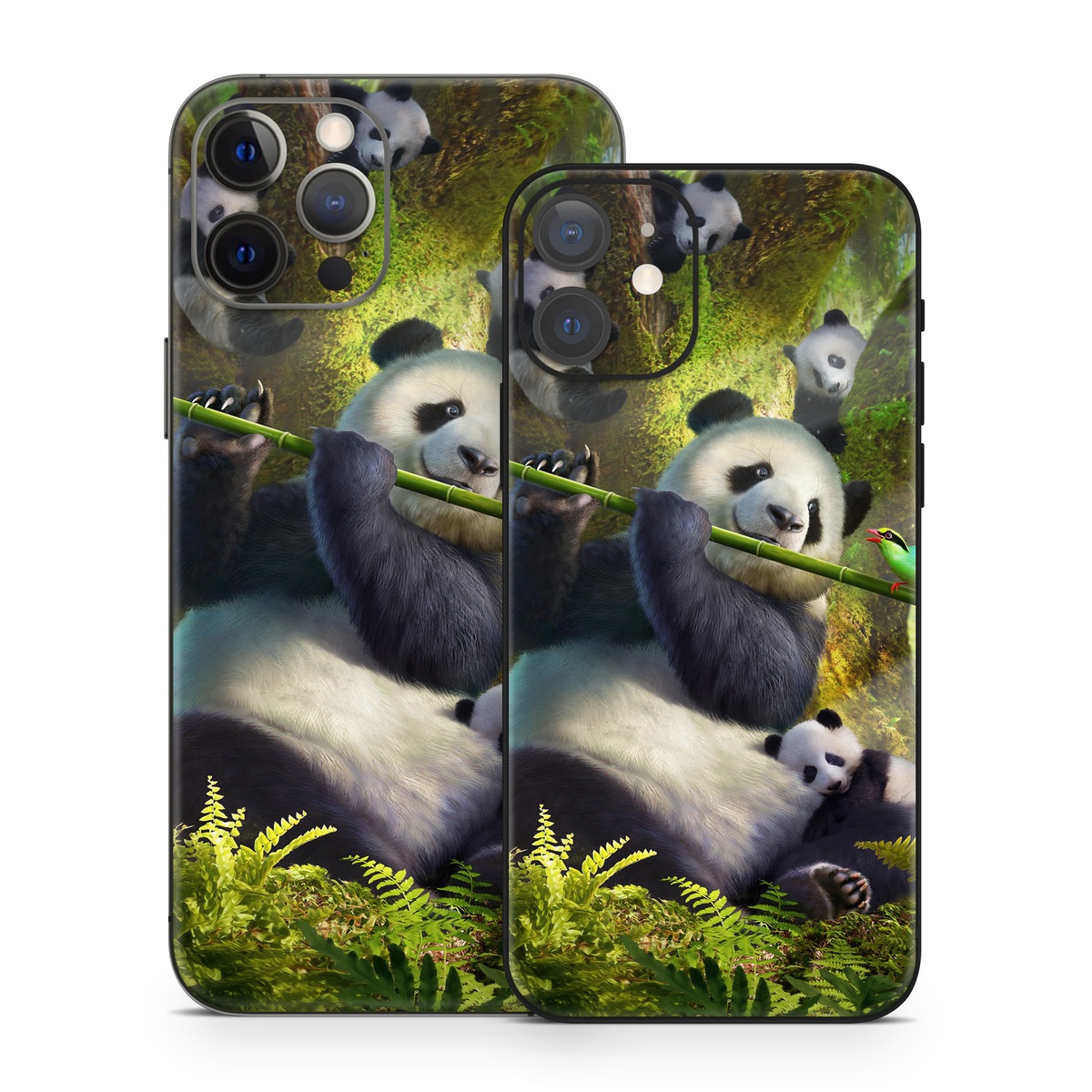 iStyles iPhone 12 Series Skin design of Plant, Organism, Grass, Adaptation, Terrestrial animal, Painting, People in nature, Art, Beak, Panda, with white, black, brown, green, gray, yellow colors, and tagged with animals, nature, objects, animal, animals, bird, jungle, music, panda, pandabear, pandas.