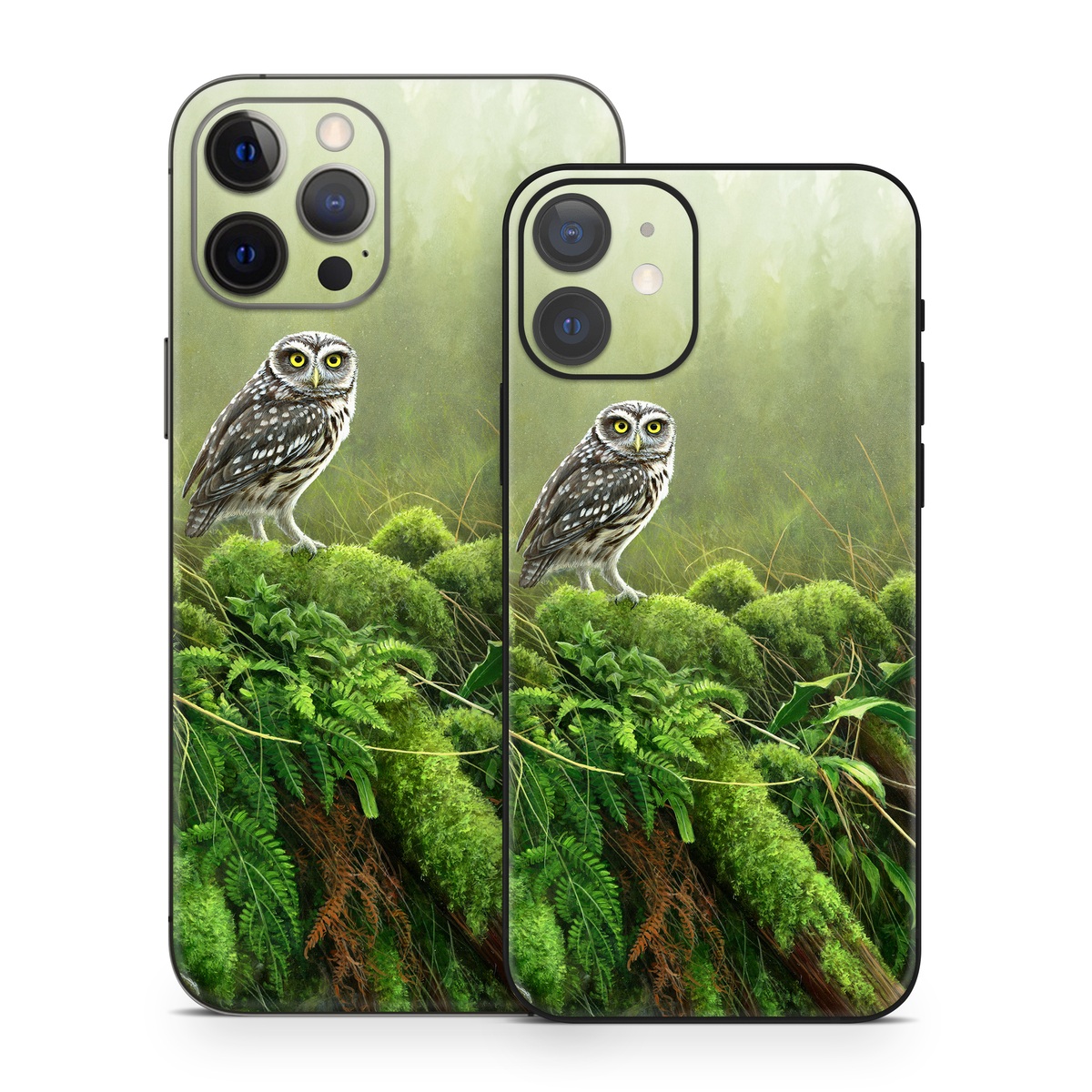 iStyles iPhone 12 Series Skin design of Nature, Owl, Bird, Bird of prey, great grey owl, Adaptation, Terrestrial plant, Wildlife, Plant, Organism, with brown, gray, green, white colors, and tagged with animals, nature, fineart, bird, forest, outdoors, owl, owls, tree, woods.