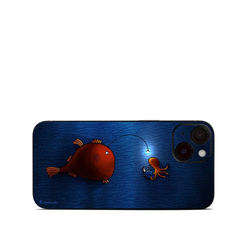 iStyles iPhone 14 Series Skin design of Deep sea fish, Anglerfish, Illustration, Fish, Animation, Art, with blue, red colors, and tagged with animals.
