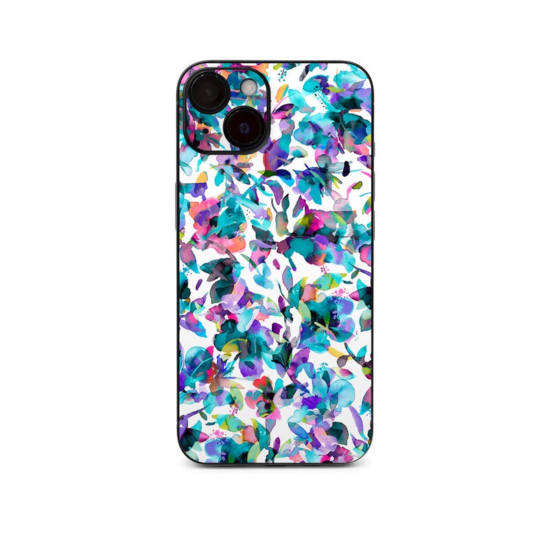 iStyles iPhone 14 Series Skin design of Pattern, Design, Textile, with white, blue, red, purple, pink, orange, yellow colors, and tagged with patterns, flowers, abstract, abstract, bright, colorful, flowers, nature, watercolor.